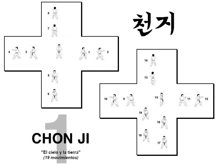 Chonji es el primer tul que se aprende. Corresponde al cinturón blanco-amarillo (9º gup).